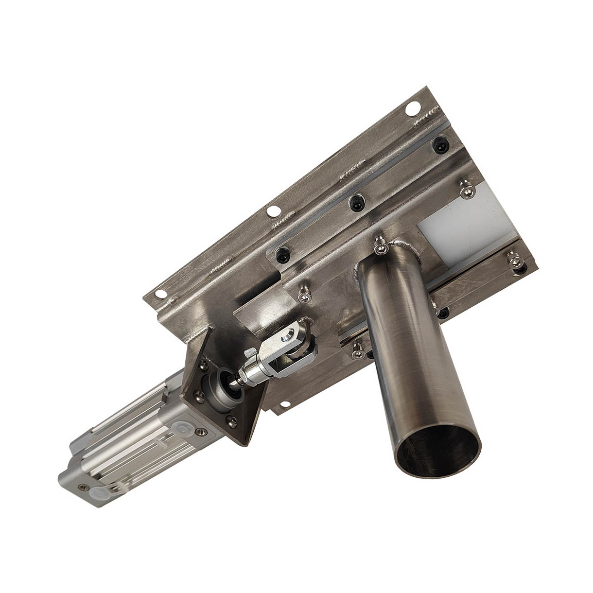 During sampling, the pneumatic cylinder extends the spool into the product stream. The spool fills with product (approximately 0.2 litres) and retracts, allowing the sample to discharge under gravity to the collection point.