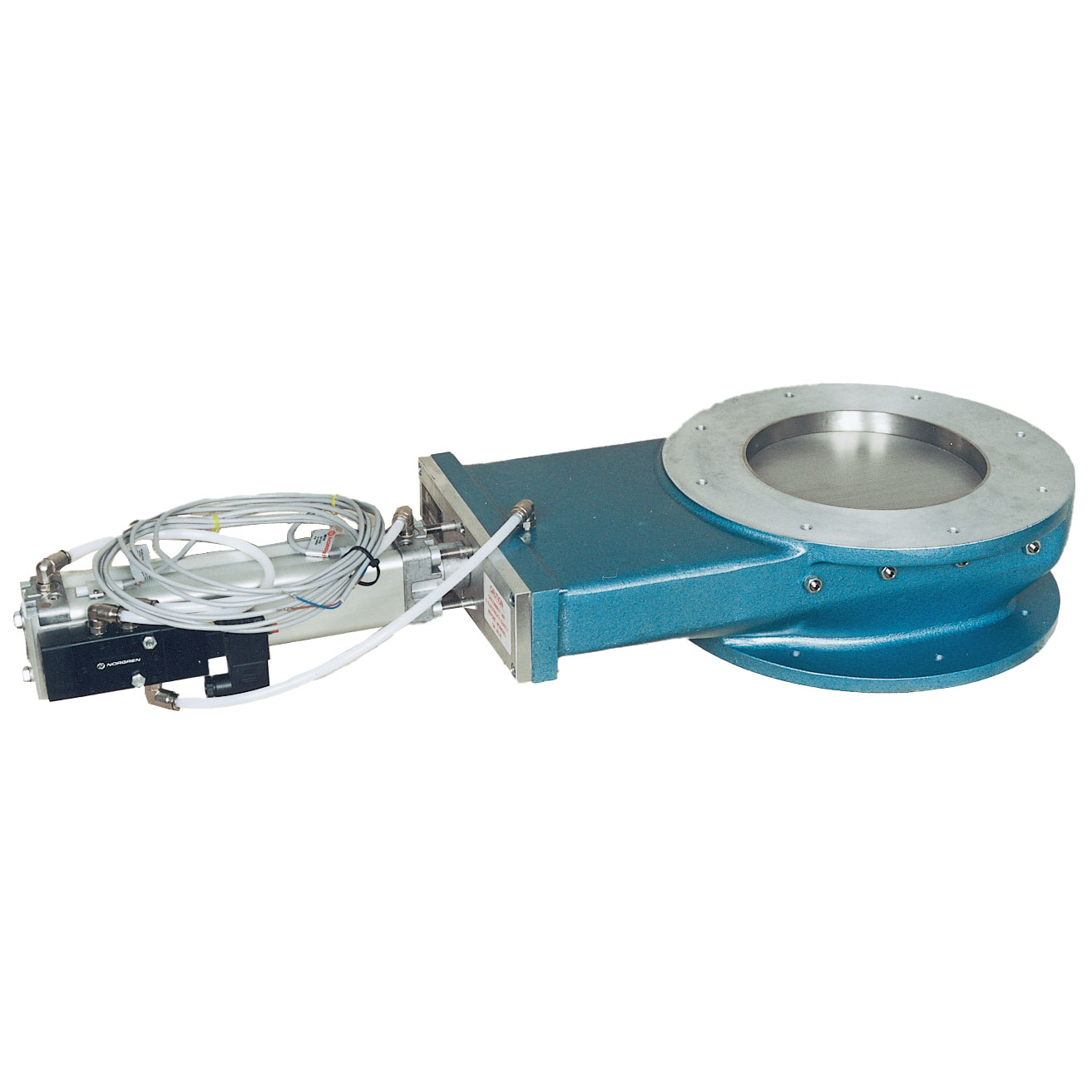 The slide plate runs on nylon 66 supports mounted on eccentric stainless steel pins for adjustment. Both versions use the same body and are dust-tight to atmosphere even when used with the finest materials.